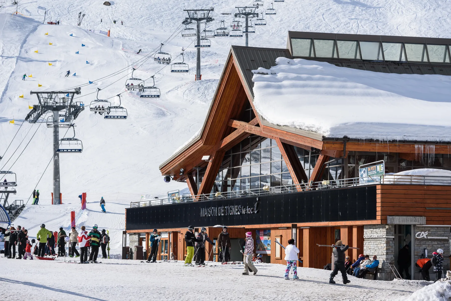 Tignes Le Lac est le centre historique de la station nouvelle, érigée dans les années 1950 après la disparition du vieux village englouti sous les eaux du barrage. Ce quartier est devenu le véritable cœur de Tignes, concentrant commerces, services, activités et événements. Bordé par le lac naturel — aujourd’hui reconstruit après les travaux du barrage — il incarne la renaissance de Tignes, entre modernité et mémoire collective.