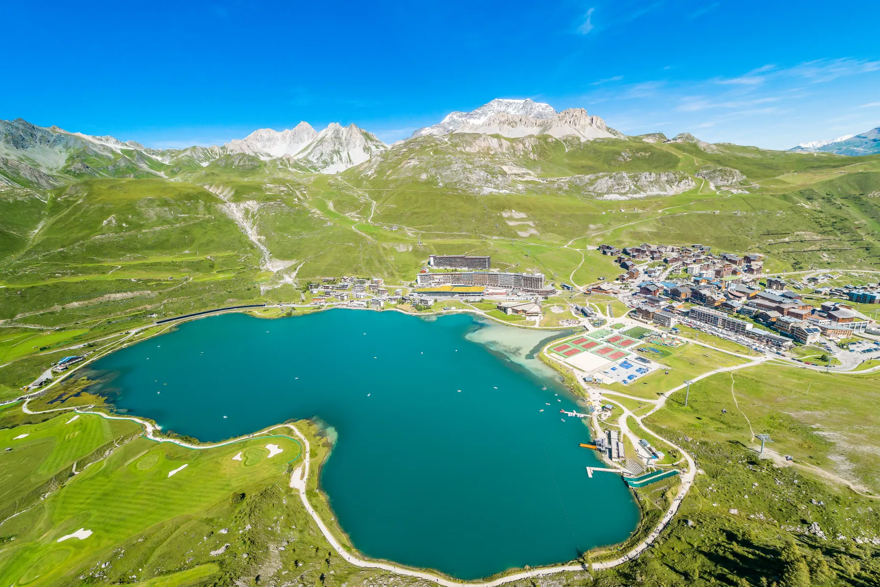 Tignes accueille un des plus hauts golfs 18 trous d’Europe, situé à 2100 mètres d’altitude, sous le glacier de la Grande Motte. Le golf du Lac de Tignes profite d’un panorama exceptionnel avec les chaines de montagnes alpines environnantes, 5 km de fairways étroits et des greens surélevés, adaptés pour les golfeurs de tous niveaux.
