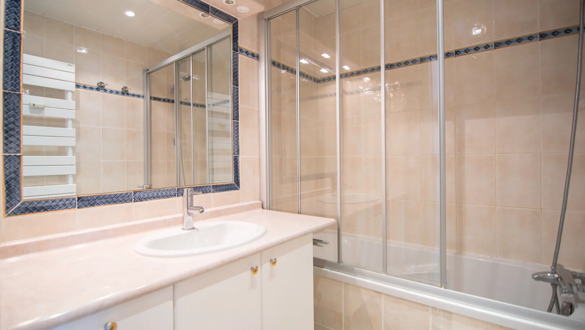 Sanitaires : salle de bains avec baignoire, WC séparés.